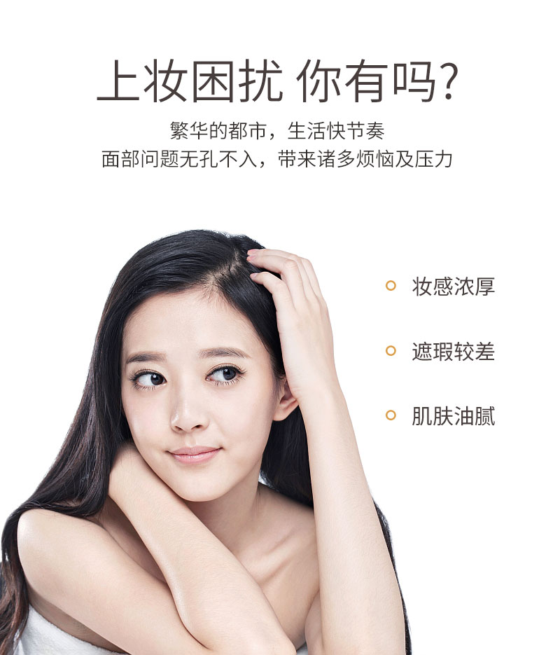 A:基础洁肤后,按需取出适量本品均匀涂抹于额头、脸部、颈部,按自身肤感调整最佳妆容。 B:在肌肤瑕疵处可多加以修饰,以获得肤色均匀。 C:无需另外使用隔离霜、粉底液或妆前乳便可进行其他步骤的化妆程序。